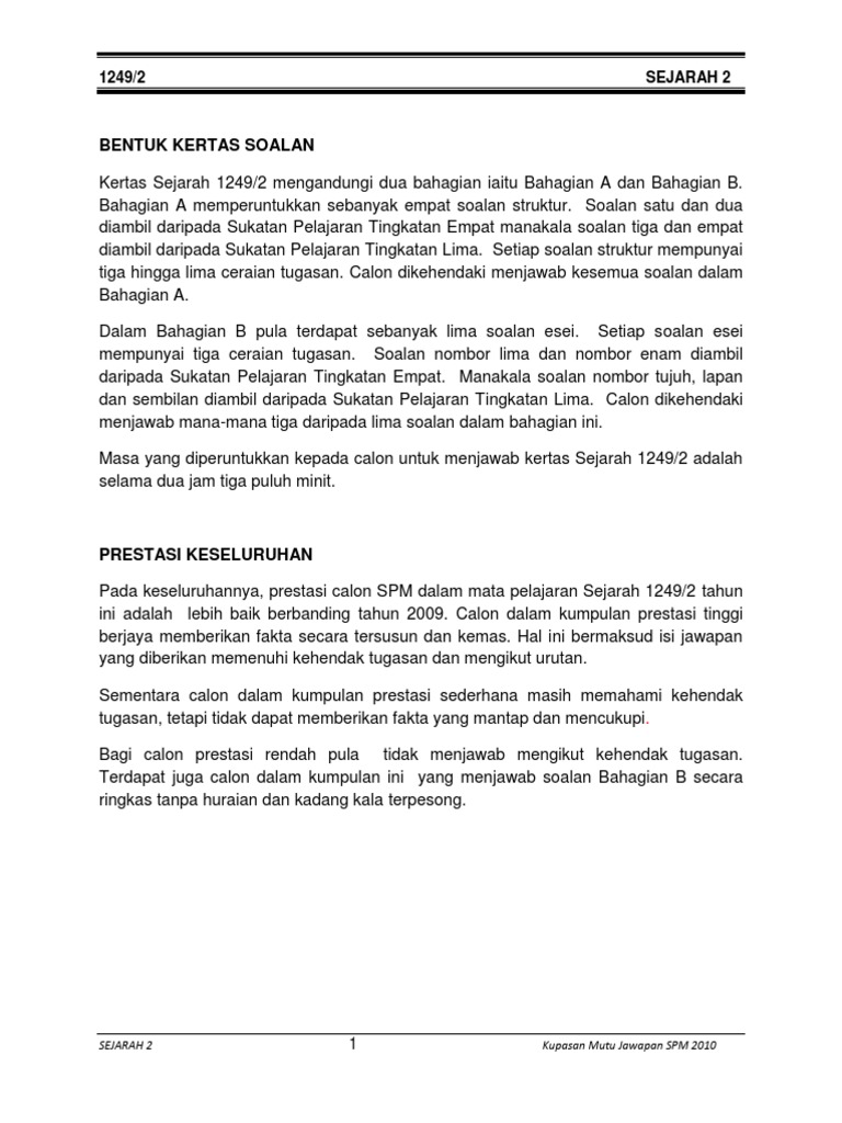 Sejarah K2 Spm 2010 Kupasan Mutu Jawapan Calon Pdf