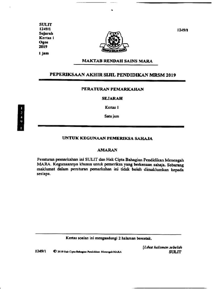 Sulit 1249 1 Sejarah Kertas 1 September 1 Jam